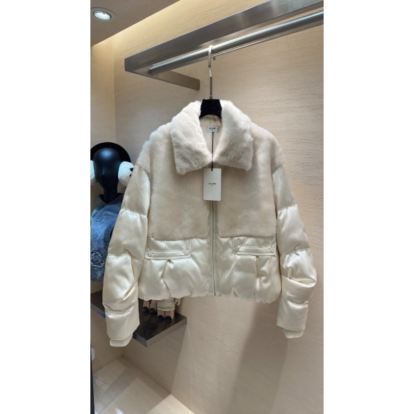 셀린 구스다운 밍크 퍼 트리밍 패딩