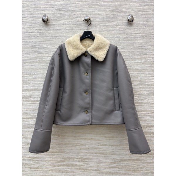 로에베 아이보리 퍼 트리밍 그레이 자켓
