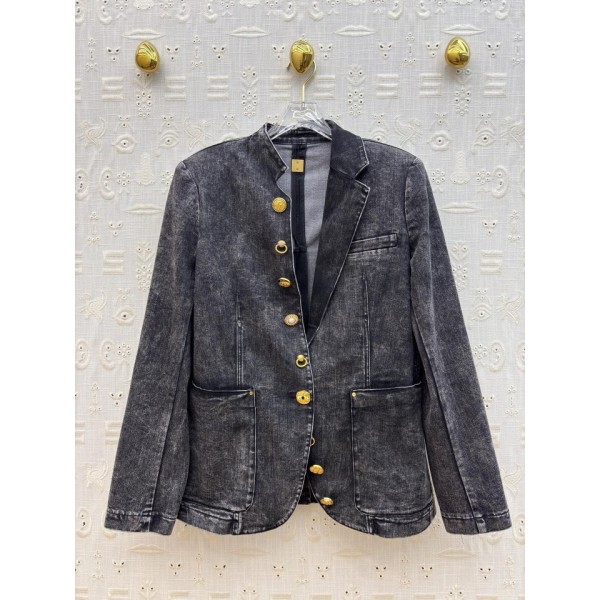 스키아파렐리 26 이형 버튼 워시드 데님 자켓