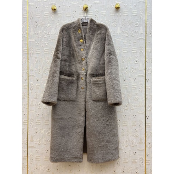 > 스키아파렐리 25 FW 이형 버튼 V넥 퍼 일체형 롱 코트