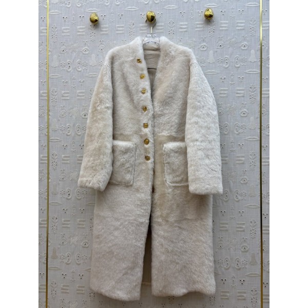 스키아파렐리 25 FW 이형 버튼 V넥 퍼 일체형 롱 코트