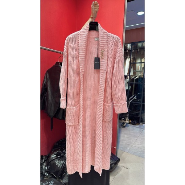 생로랑 레이스 니트 로브 가디건