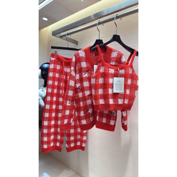 > 샤넬 반벨벳 워셔블 레드 체크 세트