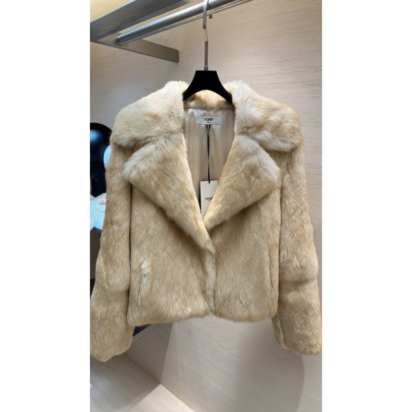 펜디 내추럴 라이트 골드 래빗 퍼 숏 자켓