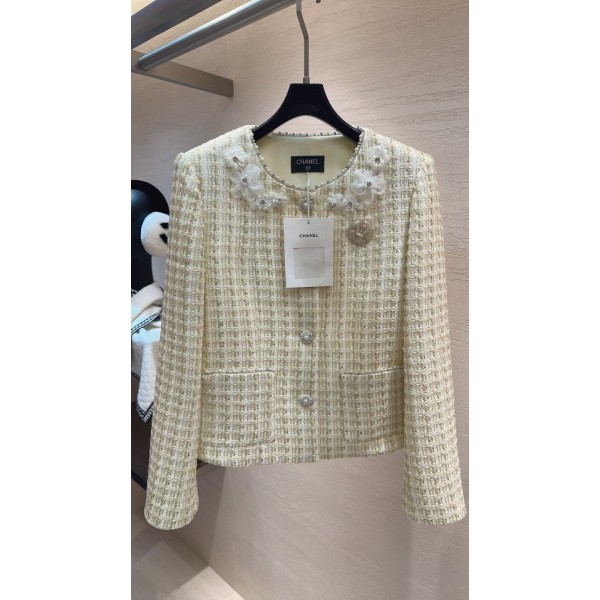 샤넬 거위옐로 트위드 자켓