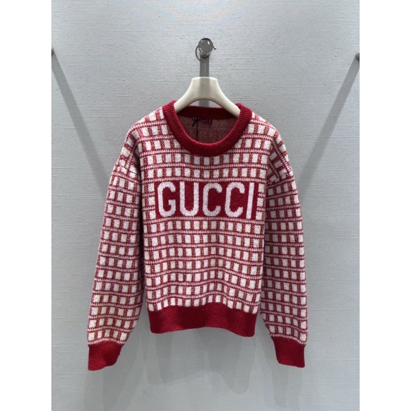 구찌 26SS GG 레드 체크 니트