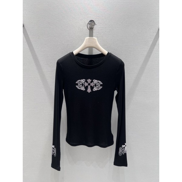 > 크롬하츠 26 신상 십자가 프린트 슬림 긴팔 티셔츠