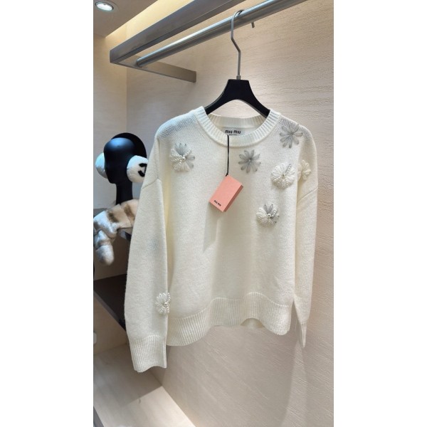 미우미우 플라워 자수 펄 니트