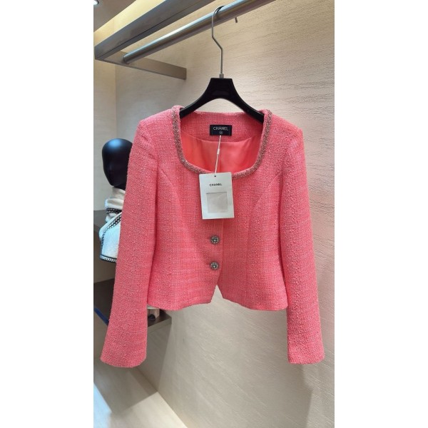 > 샤넬 여성 크리스탈 트림 카라 상의