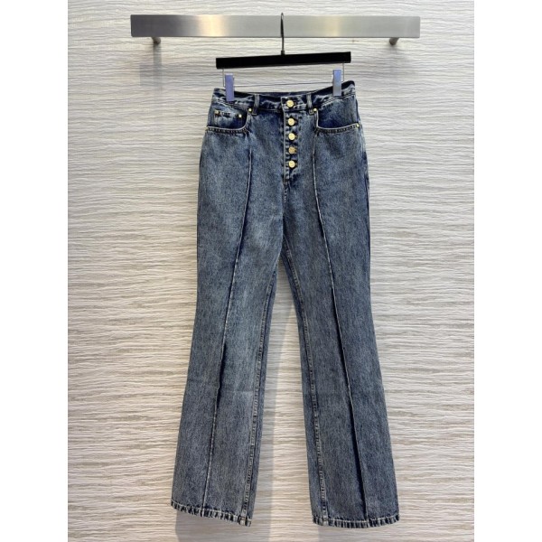 Sch 이형 버튼 마이크로 플레어 데님 팬츠