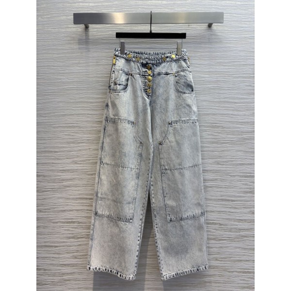 스키아파렐리 25 금버튼 스노우워시 카고 데님 팬츠