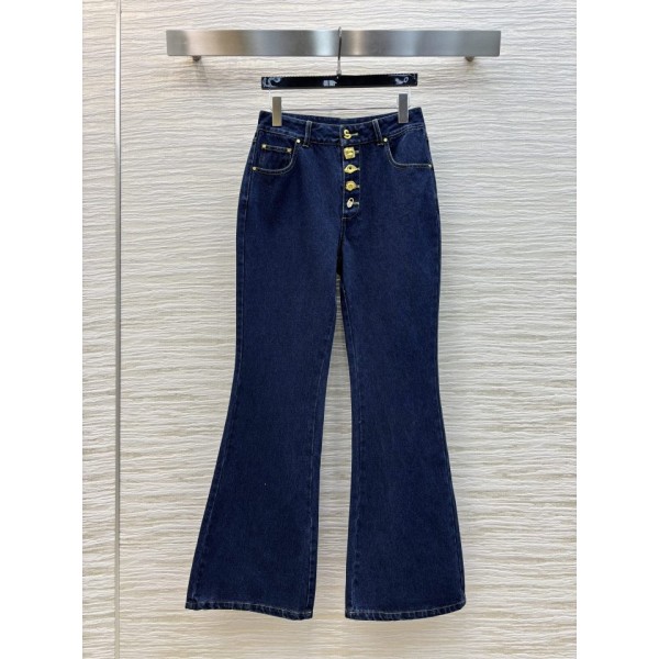 스키아파렐리 25 이형 버튼 마이크로 플레어 데님 팬츠