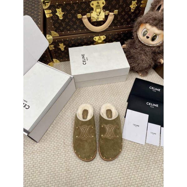 셀린느 여성 퍼 트리옹프 슬리퍼