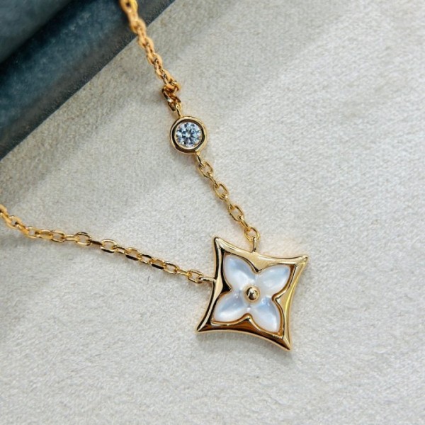 루이비통 여성 클래식 화이트 자개 클로버 모노그램 목걸이