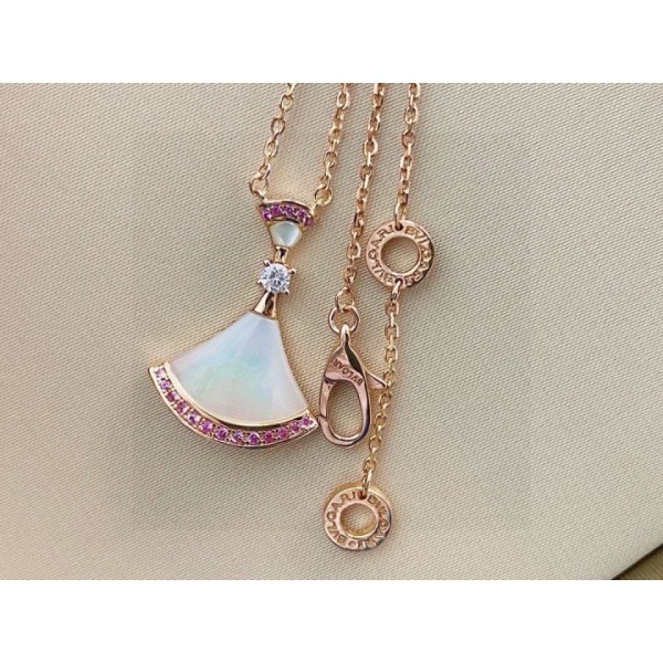 불가리 여성 클래식 디바 화이트 자개 핑크 다이아 목걸이