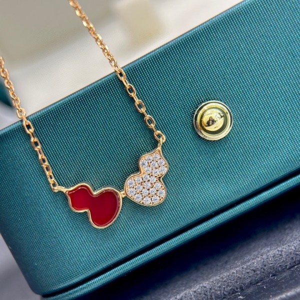 여성 클래식 더블 우루 레드 마노 호리병 목걸이