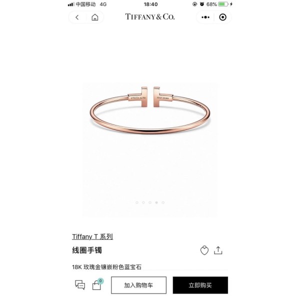 티파니 여성 클래식 더블 T 핑크 다이아 오픈 뱅글